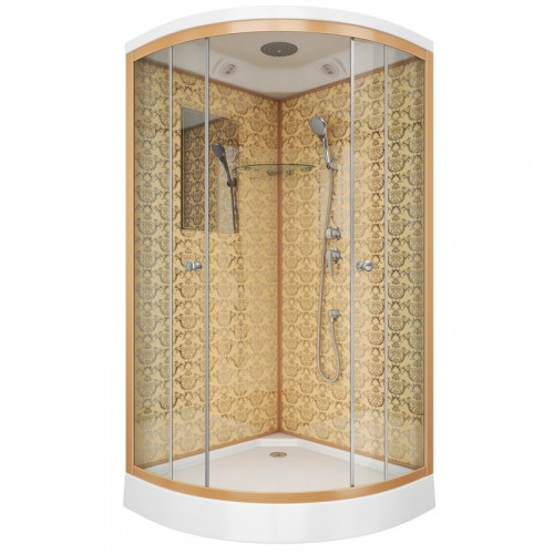 Душевая кабина Niagara Luxe NG-7702G (100x100х210) низкий поддон(15см),дверь раздвижная,стенки золото