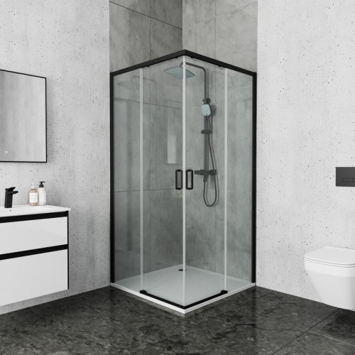 Душевое ограждение Ambassador Queen 11011204Black (100х100х200) квадрат,черный,стекло прозрачное,раздвижная