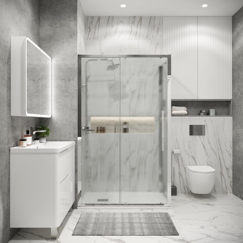 Душевое ограждение Grossman Cosmo 100.K33.02.130.10.02-200.K33.02.100.10.02 (130х100х195) раздвижная(левая),хром,стекло шиншилла