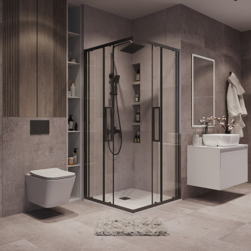 Душевое ограждение Grossman Cosmo 300.K33.02.8080.42.00 (80х80х195) квадрат,раздвижная,графит сатин,стекло прозрачное