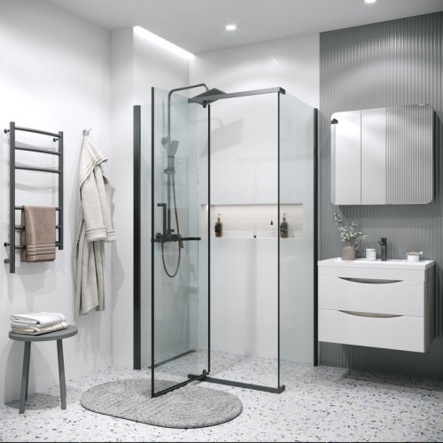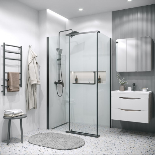 Душевое ограждение Grossman Pragma 100.K33.03.120.21.00- 200.K33.03.90.21.00 (120х90х195) распашная,черный матовый,стекло прозрачное