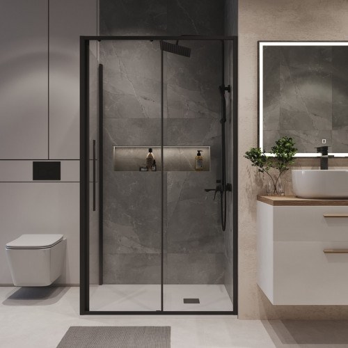 Душевое ограждение Niagara Nova NG-84-11AB-A90B-34 (110х90х195) прямоугольник,черный матовый,дверь раздвижная,стекло прозрачное