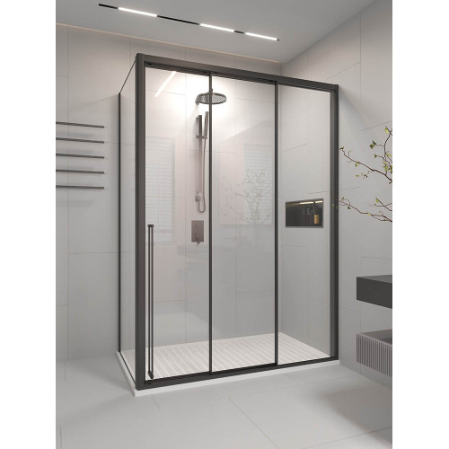 Душевой угол раздвижной Veconi Premium Prato 300 SP B-R, 1300х1000x2000, черный матовый, стекло прозрачное