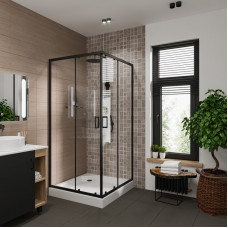 Душевое ограждение Niagara Nova NG-6829-34ВLACK (90х90х195) квадрат,черный матовый,двери раздвижные,стекло прозрачное