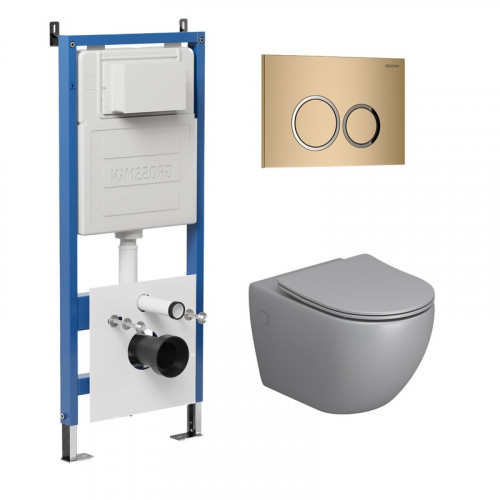 Комплект 3 в 1: Grossman инсталляция 900.K31.01.000+клавиша 700.K31.01.310.310 золото матовый+унитаз GR-4478S