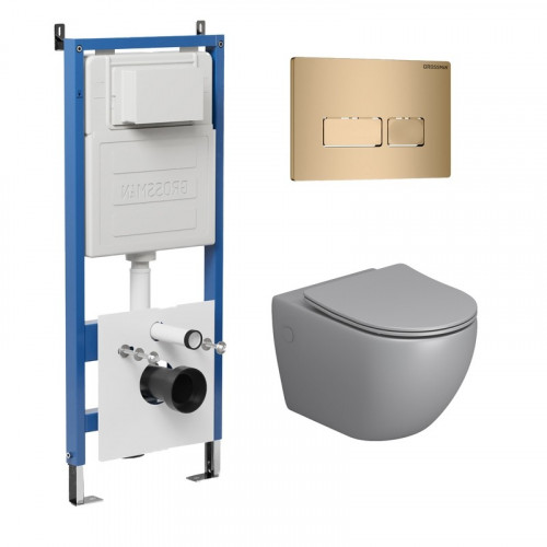 Комплект 3 в 1: Grossman инсталляция 900.K31.01.000+клавиша 700.K31.03.310.310 золото матовый+унитаз GR-4455BMS