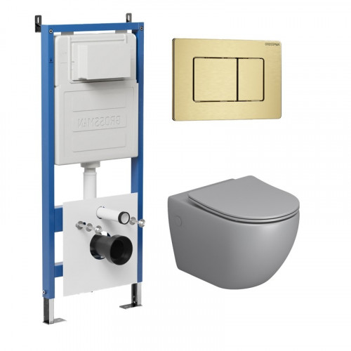 Комплект 3 в 1: Grossman инсталляция 900.K31.01.000+клавиша 700.K31.04.32M.32M золото сатиновый+унитаз GR-4455BMS