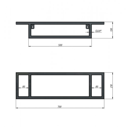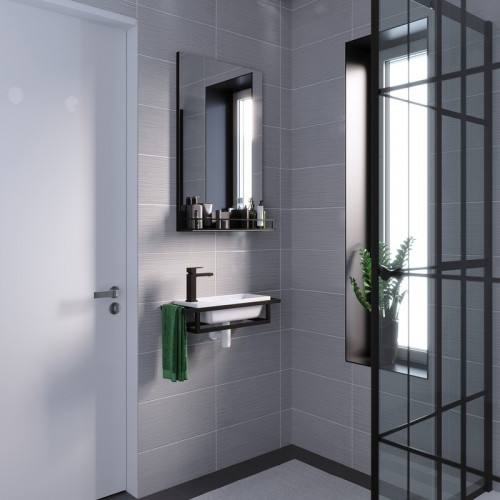 Консоль подвесная "МЕТРИС-50 см" черная с прав. и лев. полотенцедержателем (ум. Модуль-50)