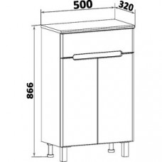 Тумба в ванную (полупенал) с одним выдвижным ящиком и двумя распашными дверками, за которыми одна вс..