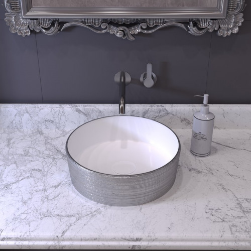 Раковина Grossman GR-5020SW (355х355х115) серебро,белая внутри,1 место
