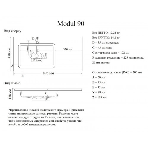 | Материал корпуса | искусственный мрамор |