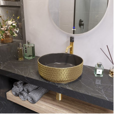 Раковина Grossman GR-5010GBR (355х355х115) золото,черная внутри,1 место