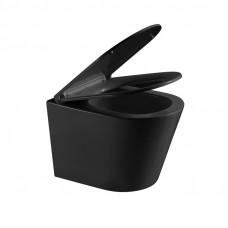 Унитаз подвесной Grossman GR-4478BMSQ (515х355х365) безободковый,черный матовый с тонкой крышкой,микролифт,смыв торнадо