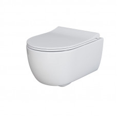 Унитаз Queen 113T20001R (570*360*400) БЕЛЫЙ подвесной БЕЗОБОДКОВЫЙ с тонкой крышкой