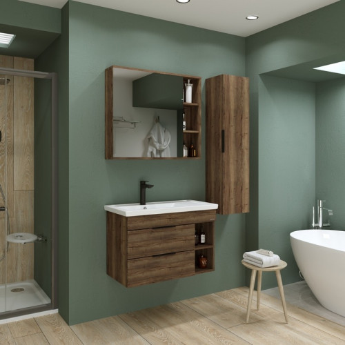 Шкаф-зеркало "ФОРТА-80 см" универсал. темный дуб