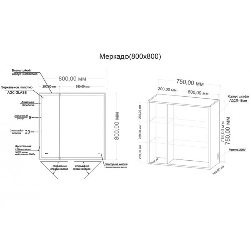 Шкаф-зеркало "МЕРКАДО-80 см" Пр. с LED подсветкой