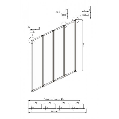 Шторка для ванны Ambassador Bath Screens 16041110R (90х140) хром,стекло прозрачное,складная