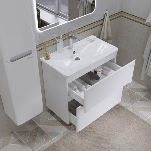 Тумба напольная "АДЕЛЬ-НОРМА-80 см" с 2-я ящ. белый глянец (ум. Aдель-80)