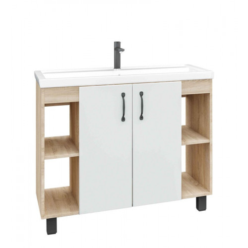 Тумба напольная "ФЛАЙ-100 см" дуб сонома/белая (ум.Фостер-100)