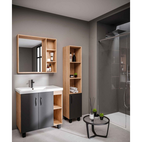 Тумба напольная "ФЛАЙ-80 см" дуб сонома/серая (ум.Фостер 80-Пр)