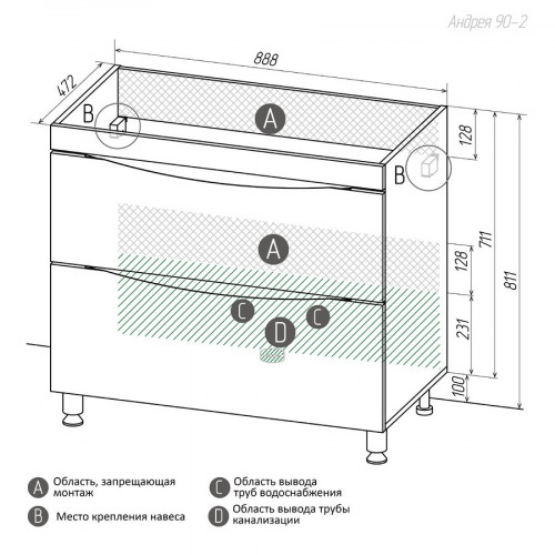 | Ширина с раковиной, см | 90 |