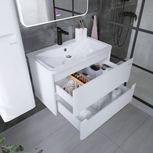 Тумба подвесная "АДЕЛЬ-НОРМА-80 см" с 2-я ящ. белый глянец (ум. Aдель-80)