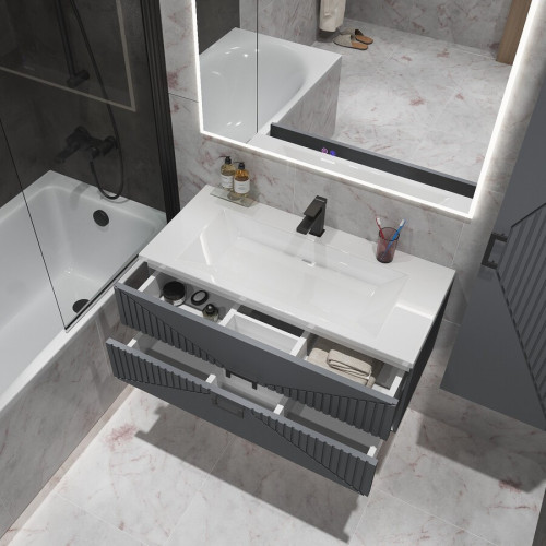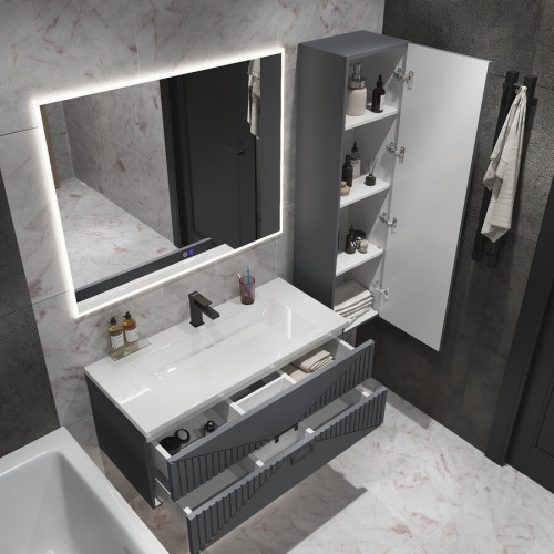 Тумба подвесная "ЛУКСОР-100 см" с 2-я ящ. графит матовая (ум. Блисс-100 см.)
