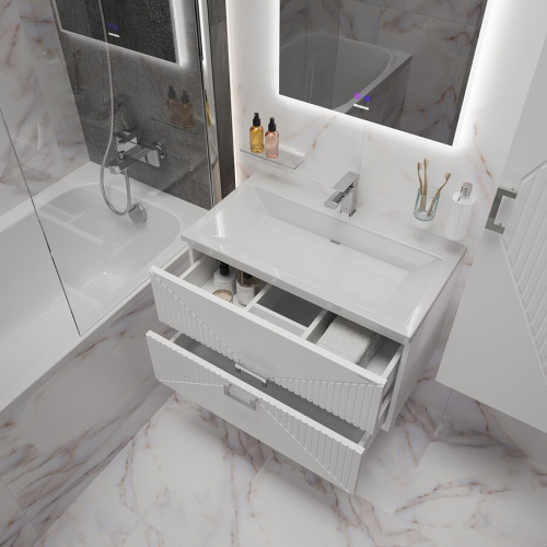 Тумба подвесная "ЛУКСОР-80 см" с 2-я ящ. белая матовая (ум. Блисс-80 см.)