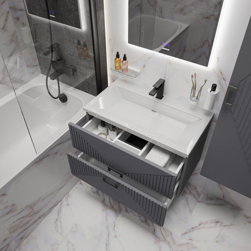 Тумба подвесная "ЛУКСОР-80 см" с 2-я ящ. графит матовая (ум. Блисс-80 см.)