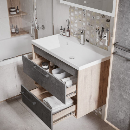 Тумба подвесная "РЕАЛ-80 см" с 2-я ящ. веллингтон/бетон Арья (ум.Classica-80)