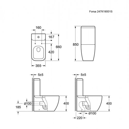Унитаз Forsa 247K19001S (645*355*850) напольный с тонкой крышкой
