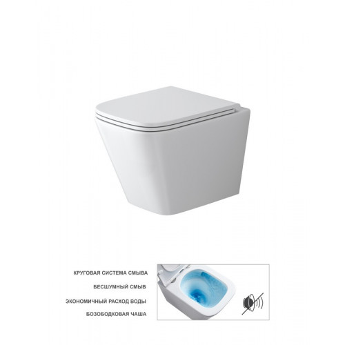 Унитаз подвесной Grossman GR-4479SQ (485х340х355) безободковый,белый с тонкой крышкой,микролифт,смыв торнадо