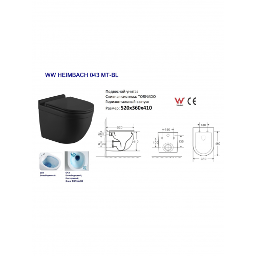 Унитаз подвесной WW HEIMBACH 043 MT-BL