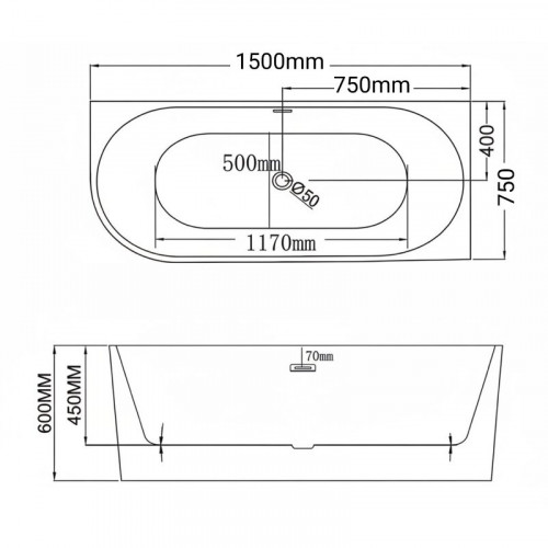 Ванна пристенная Grossman Cristal GR-2203L (75х150х58) 1 место