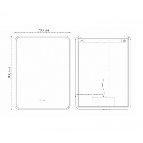 Зеркало ELEGANS-норма BLACK (700*800*45) LED с сенсорным выключателем и подогревом