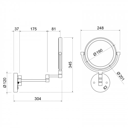 Черная сантехника становится все более популярна для ванных комнат из-за способности расставлять акценты.Зеркало Saona 13376 предназначено для использования в ванной комнате. Главное назначение зеркала - помощь в проведении косметических процедур. Функция 5-х кратного увеличения поможет рассмотреть отдельные участки лица. Диаметр зеркала 200мм. Подсветка зеркала работает от сети 220Вт.Аксессуары для ванной комнаты и туалета - важные составляющие комфортной и продуманной обстановки